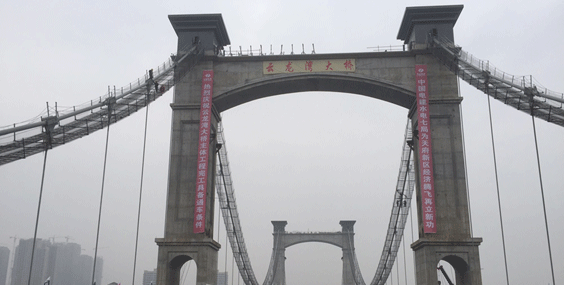 中國首座大跨度鐵路懸索橋-麗香鐵路金沙江特大橋 首個(gè)散索鞍順利安裝到位