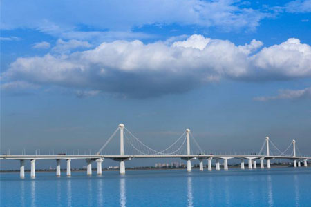 杭州江東大橋又稱錢江九橋,大橋全長(zhǎng)4332.5米,大橋設(shè)計(jì)新穎,其中三跨空間纜自...