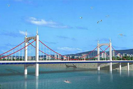 臨汾洰河橋?yàn)橹骺?68+168米的自錨式懸索橋。...