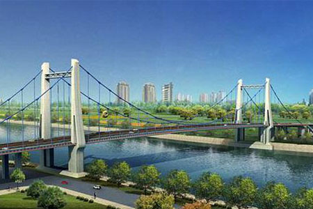 牡丹江市西十一條路跨江大橋工程,全橋長(zhǎng)約1740米,主橋?yàn)樽藻^式懸索橋,南北引道...